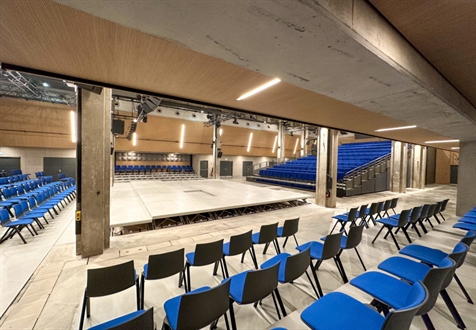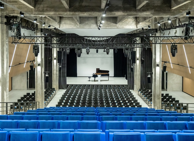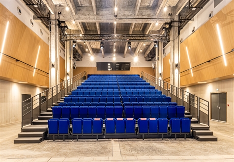 Capacité d’accueil : 500 personnes assises – 1 000 debout / ERP de catégorie 2 / Espace multimodal : alimentation des installations scéniques, équipements de la scène, audiovisuel et éclairage / Distribution VDI régie. Master Class aménagées dans les combles (opération parallèle, mission partielle).