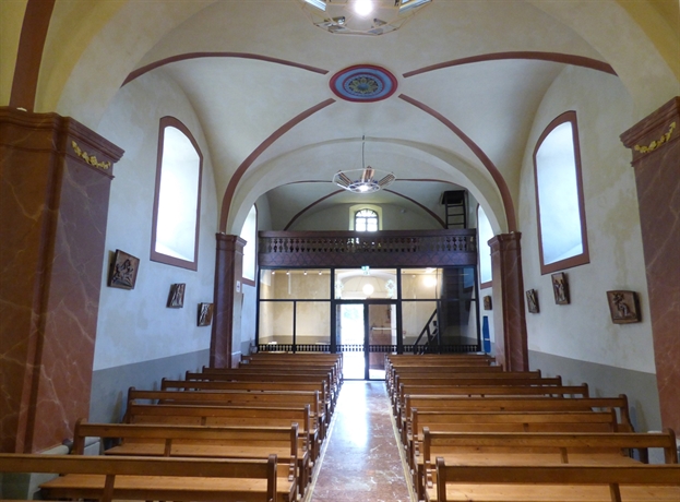 - Phase IV : restauration des enduits intérieurs avec recherche et restauration/restitution des décors peints antérieurs, reprise de l'installation chauffage / électricité pour mise aux normes avec réfection de l'éclairage intérieur, éclairage de la chambre des cloches, restaurations / réaménagements intérieurs : espace baptême, sols + sas métallique.