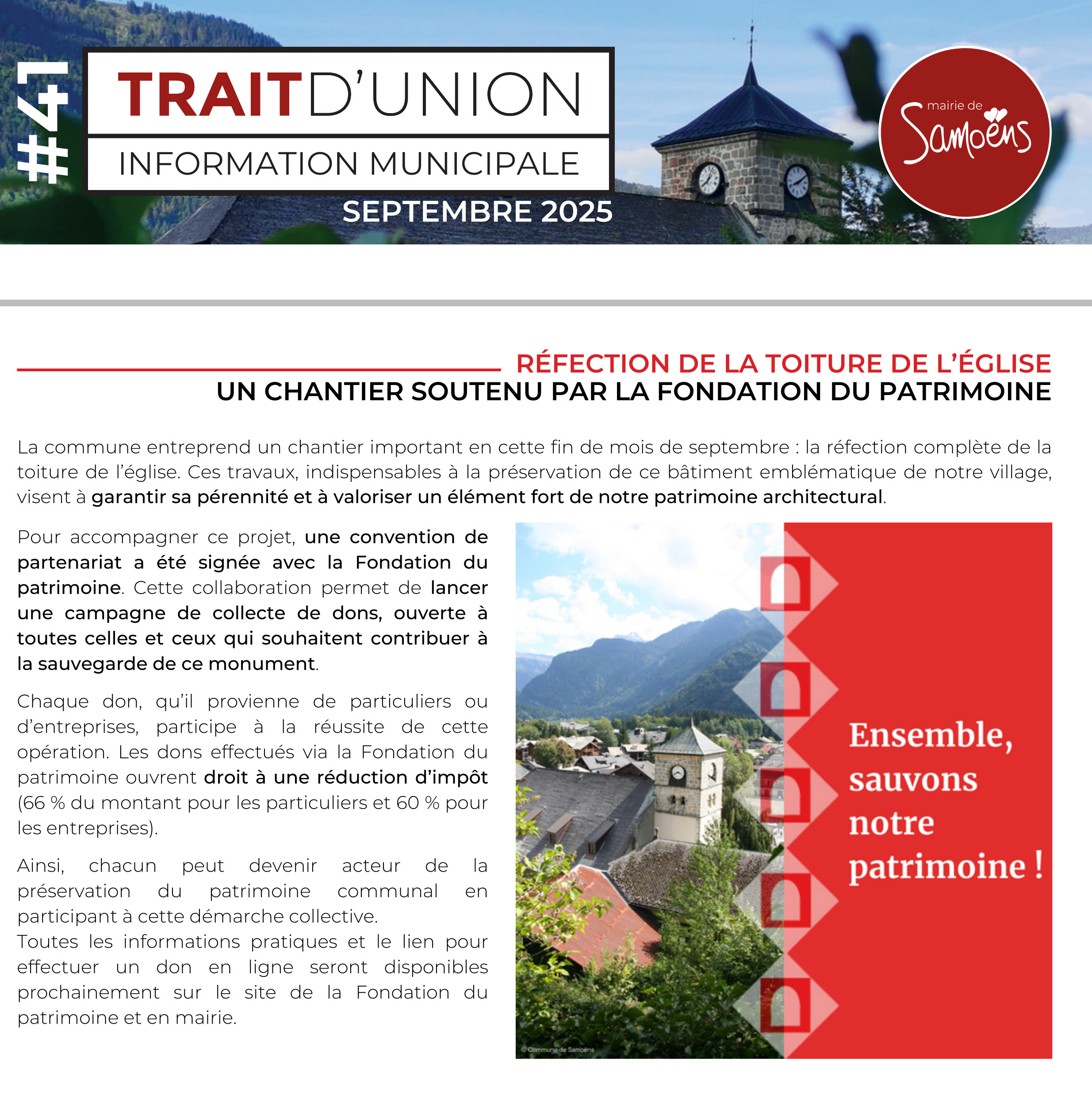 Article du bulletin d'information municipal de Samoëns de septembre 2025 :