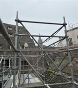 Après celui de la Sainte Chapelle, réalisation d'un échafaudage suspendu atypique pour les travaux de restauration des toitures de l'église. Il est conçu pour ne pas reposer sur les toitures inférieures. Merci à CIREME Echafaudages Marseille !